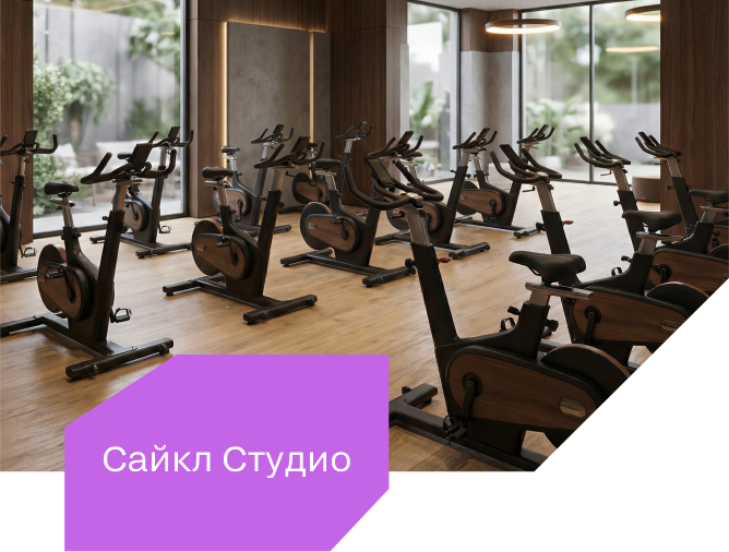 Скоро у нас откроется Сайкл Студио – яркое просторное помещение с современными велотренажерами для групповых индивидуальных занятий. Атмосфера студии мотивирует на энергичные тренировки, создавая эффект настоящего командного веломарафона. Продуманная акустика и освещение делают каждое занятие динамичным и вдохновляющим. Более 10 направлений – йога, пилатес, силовые, функциональные и кардиотренировки. Энергия, мотивация и профессиональные инструкторы на каждом занятии.