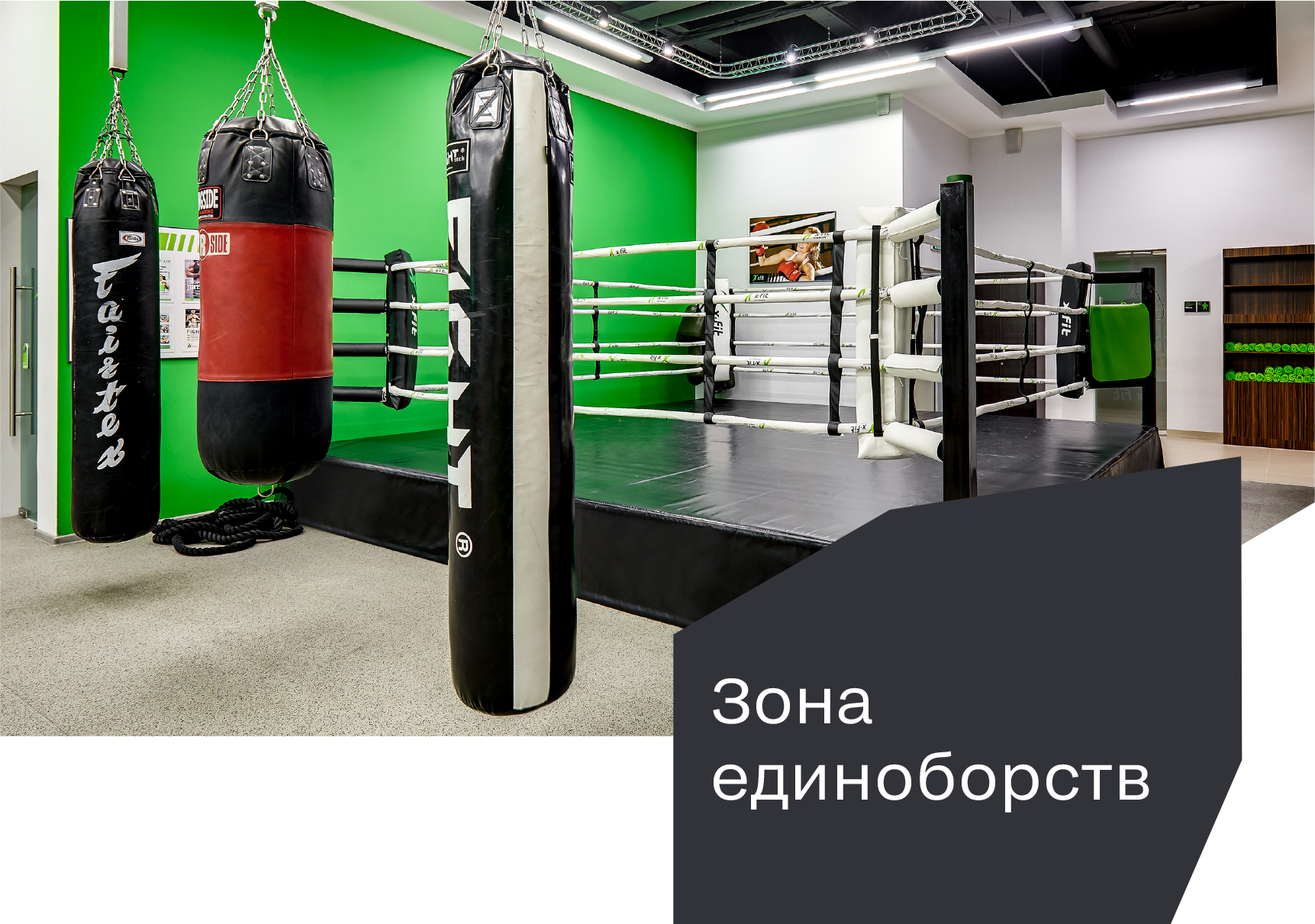 Тренажерный зал с новым оборудованием, большой групповой зал и зал бокса в свободное от уроков время, использование комфортных раздевалок, душевых и остальных удобств клуба.